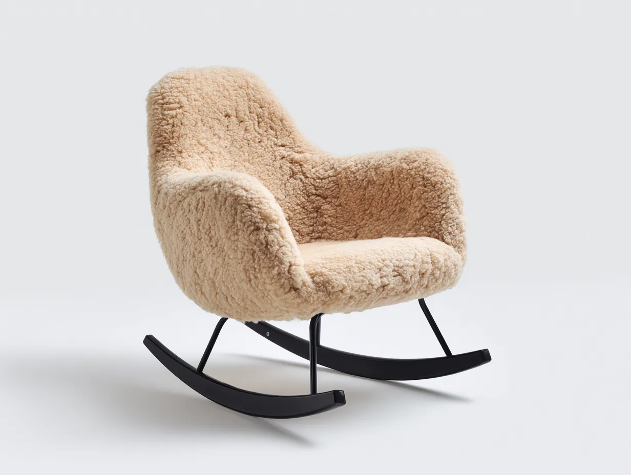 Der Bezug besteht aus Teddy-Stoff in Beige und zeichnet sich durch eine besonders weiche und strukturierte Oberfläche aus. Sitzfläche und Rückenlehne sind komfortabel gepolstert und bieten angenehmen Halt im Alltag. Das stabile Metallgestell in schwarzer Ausführung sorgt für eine zuverlässige Konstruktion und unterstützt die gleichmäßige Schaukelbewegung.