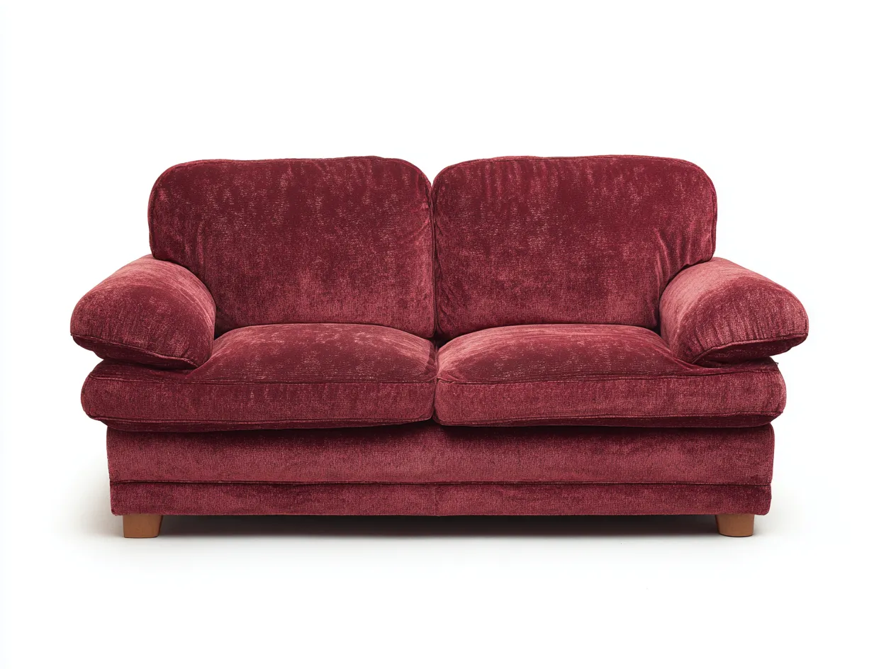 Der Bezug besteht aus robustem Stoff in Weinrot und bietet eine weiche Oberfläche für angenehmen Sitzkomfort. Die stabile Innenstruktur sorgt für zuverlässige Stabilität bei täglicher Nutzung. Holzfüße unterstützen die Konstruktion und geben dem Sofa einen sicheren Stand.